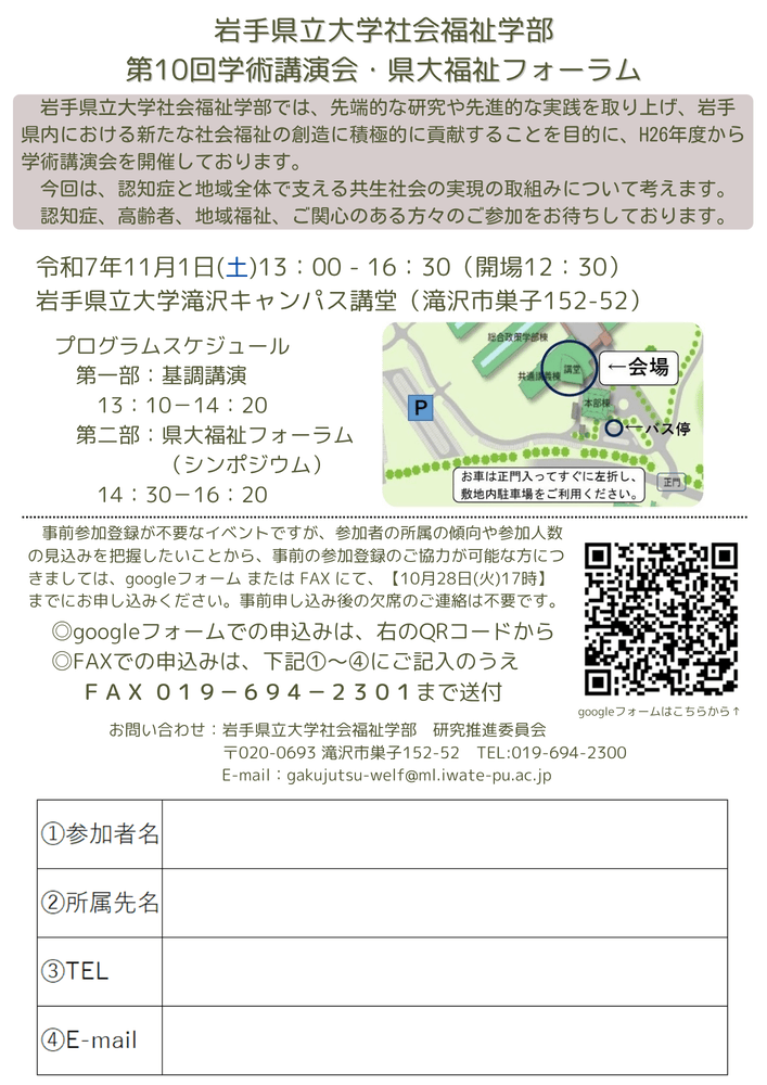 岩手県立大学社会福祉学部 第10回学術講演会 開催のご案内