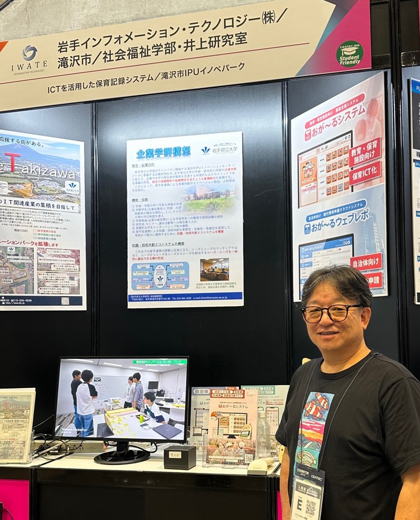 近年は、保育業務の効率化と質向上を目的とした保育業務支援システムの高度化研究を展開している。INPIT(独立行政法人工業所有権情報・研修館)の支援を受け、ICTを活用した保育記録システム、保育給付業務DX、子どもの発達経過の可視化を可能にするシステムを開発し、これまでに6件の特許を取得した。これらの技術を応用した製品は全国の自治体・保育施設で導入され、実践的な効果を上げている。